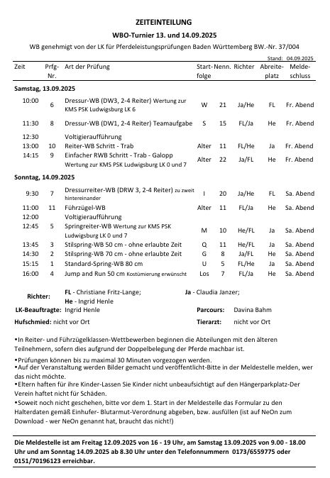 Wir starten in diesem Jahr mit zwei Dressurwettbewerben der Klasse E ins Turnierwochenende. gefolgt von Jugendwettbewerben mit angepassten Anforderungen an die